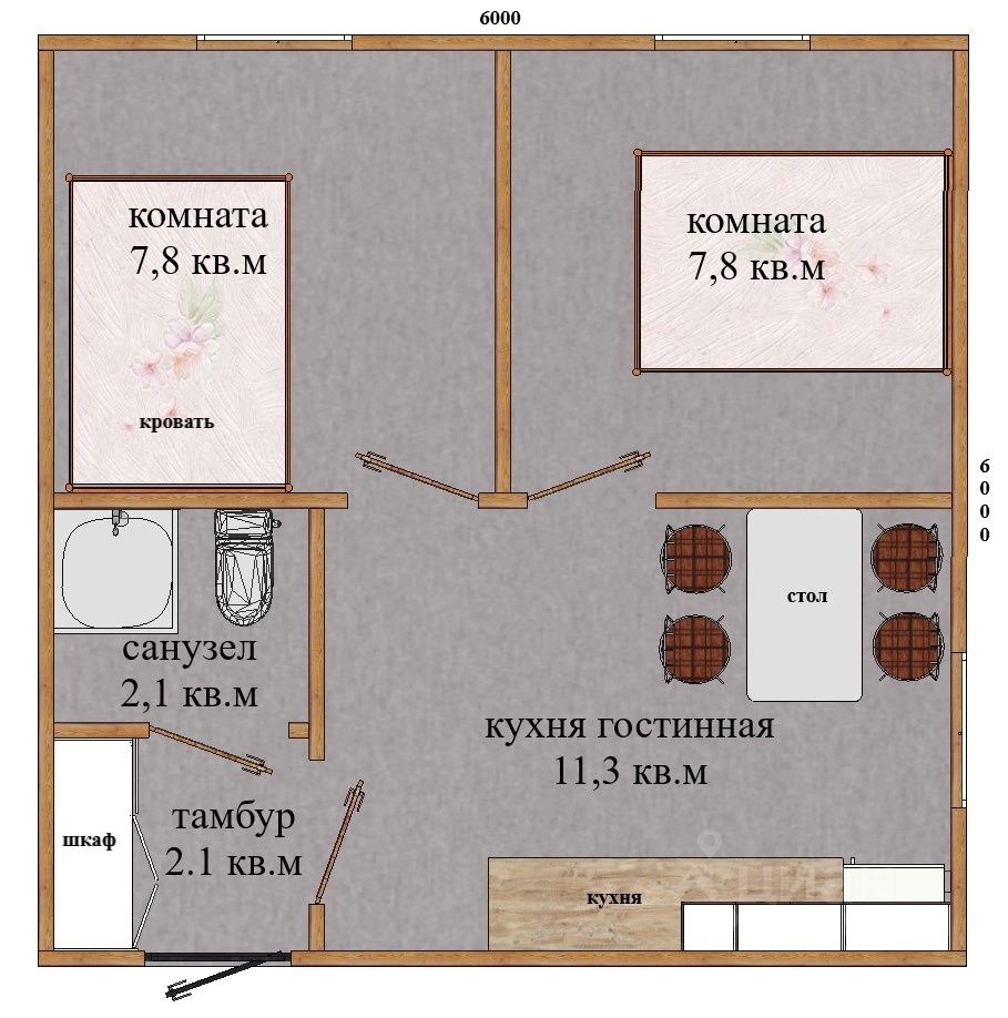 Общая площадь36 м2