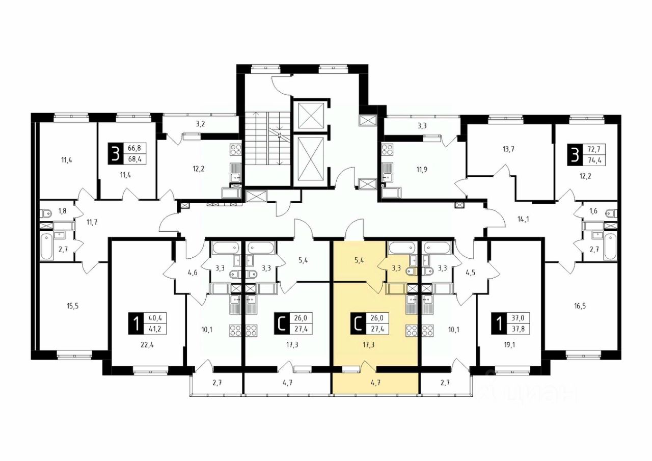 Продаётся студия в строящемся доме (Корпус 1), срок сдачи: 1-кв. 2026, общей площадью 27.40 кв.м., на 13 этаже.