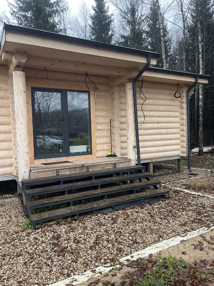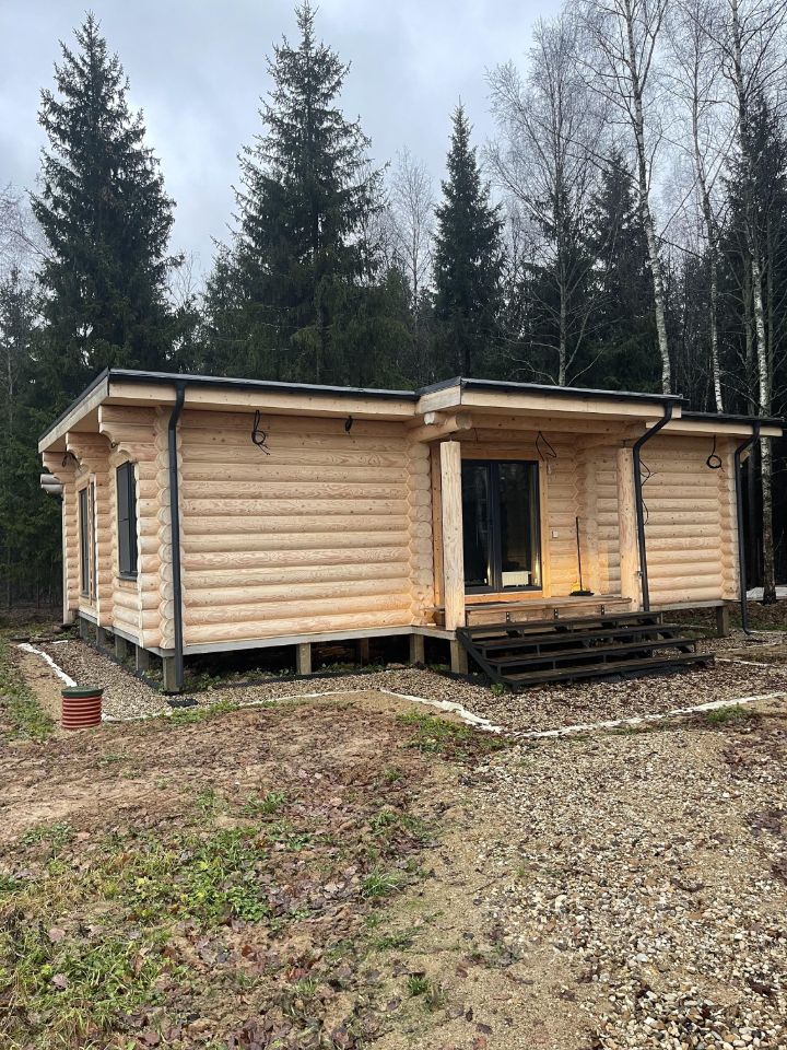 Участок правильной формы 51х32 метра. Конструкция дома создана по дизайну современного финского дома в 2023 году. Полтора года дом естественно дышал под крышей и брёвна 26см диаметром усаживались для начала установки окон, дверей и отделки. Дом без спешки усажен по всем канонам и не гуляет в зависимости от погоды. Поскольку дом из крупного бревна, тепло держит трое суток без отопления, не промерзает, летом наоборот прекрасно сохраняет прохладу в мощную жару. Почувствовав это раз, понимаешь как это круто и естественно без сложных усилий. Весь пол тёплый и автоматизирован от небольшого безопасного газового котла закрытого типа. Газ подаётся из газгольдера, 3800 литров хватает на отопление 20 месяцев, проверено. Дом прошёл испытания зимой 2024-2025 и настоящей зимой 2025-2026, всё отлично и работает как нужно. Своя вода, горячая и холодная. Вода чистейшая, установлена крутая автоматизированная система очистки, которая сама сбрасывает накопленные примеси. Три раковины, душ и два санузла. Помещение для сауны. Две спальни и большой панорамный зал с кухней. Своя очистная система и отдельная дренажная система вокруг дома. Максимальная автономность. В доме всё новое, никто не живёт, только ежемесячно проверяется. Дом красиво повёрнут к лесу под углом для выхода к лесу на веранду. Продажа спокойная, без суеты.