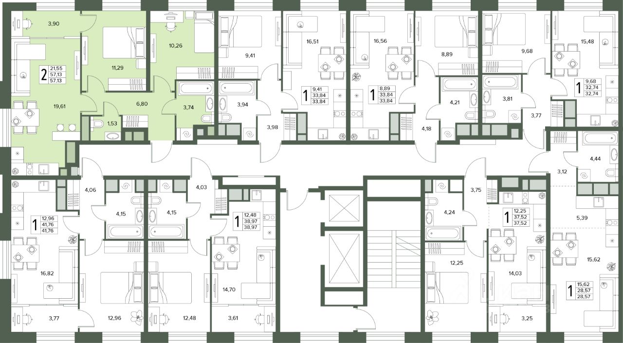 Общая площадь57,13 м2