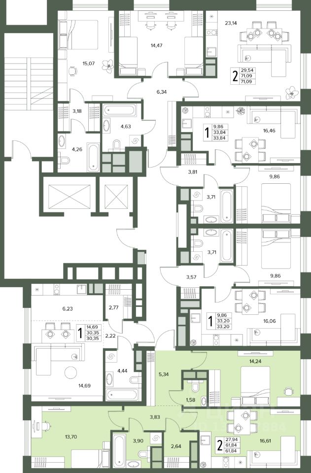 Общая площадь61,84 м2