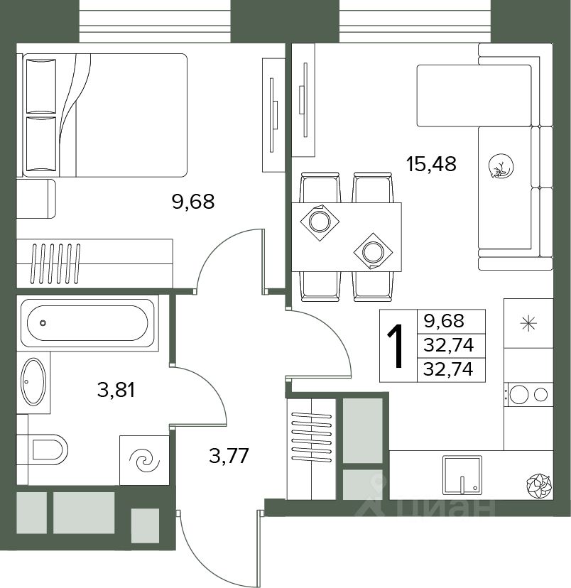 Общая площадь32,74 м2