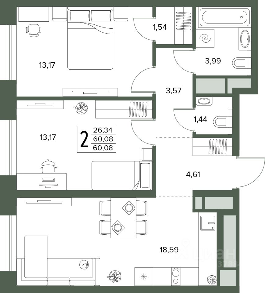 Общая площадь60,08 м2