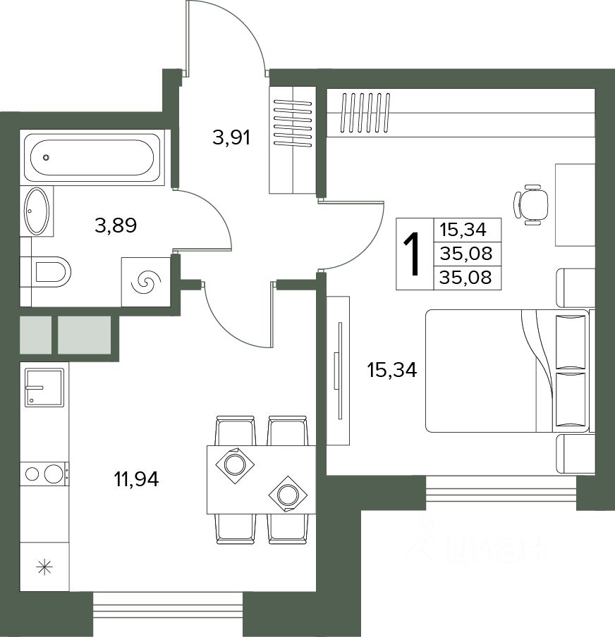 Общая площадь35,08 м2
