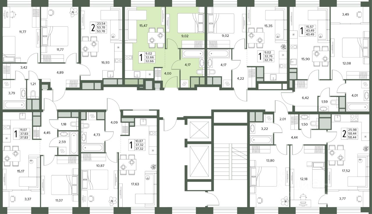 Общая площадь32,66 м2