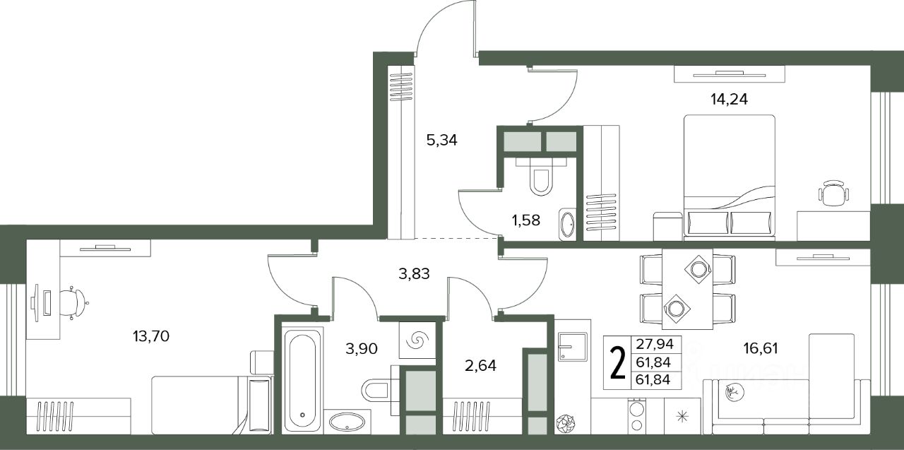 Общая площадь61,84 м2