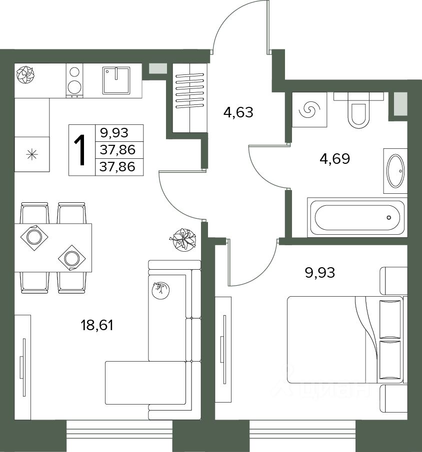 Общая площадь37,86 м2