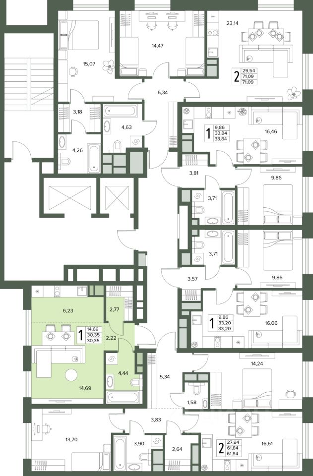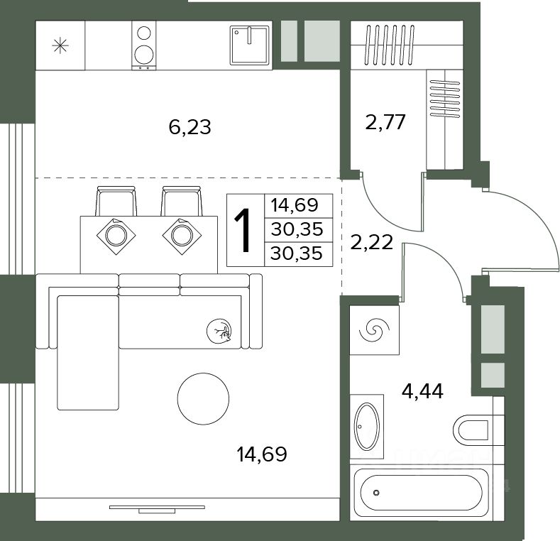 Общая площадь30,35 м2