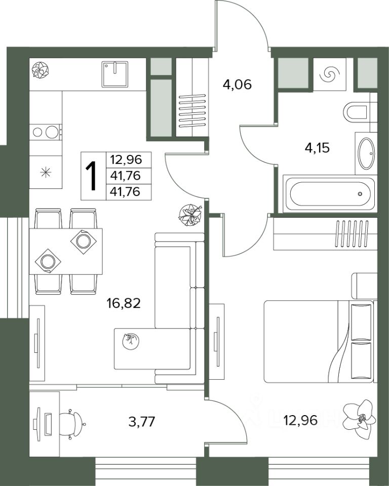 Общая площадь41,76 м2