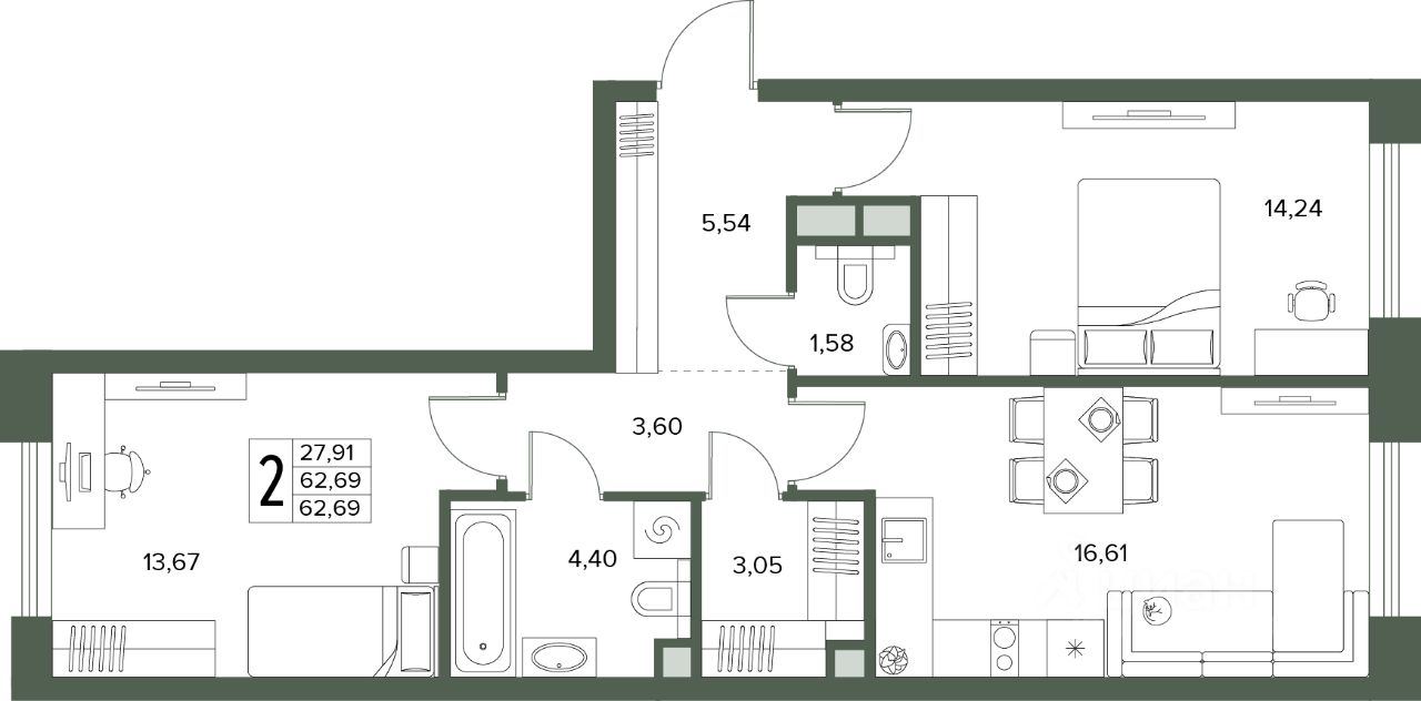 Общая площадь62,69 м2
