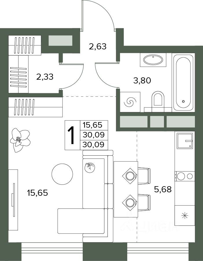 Общая площадь30,09 м2