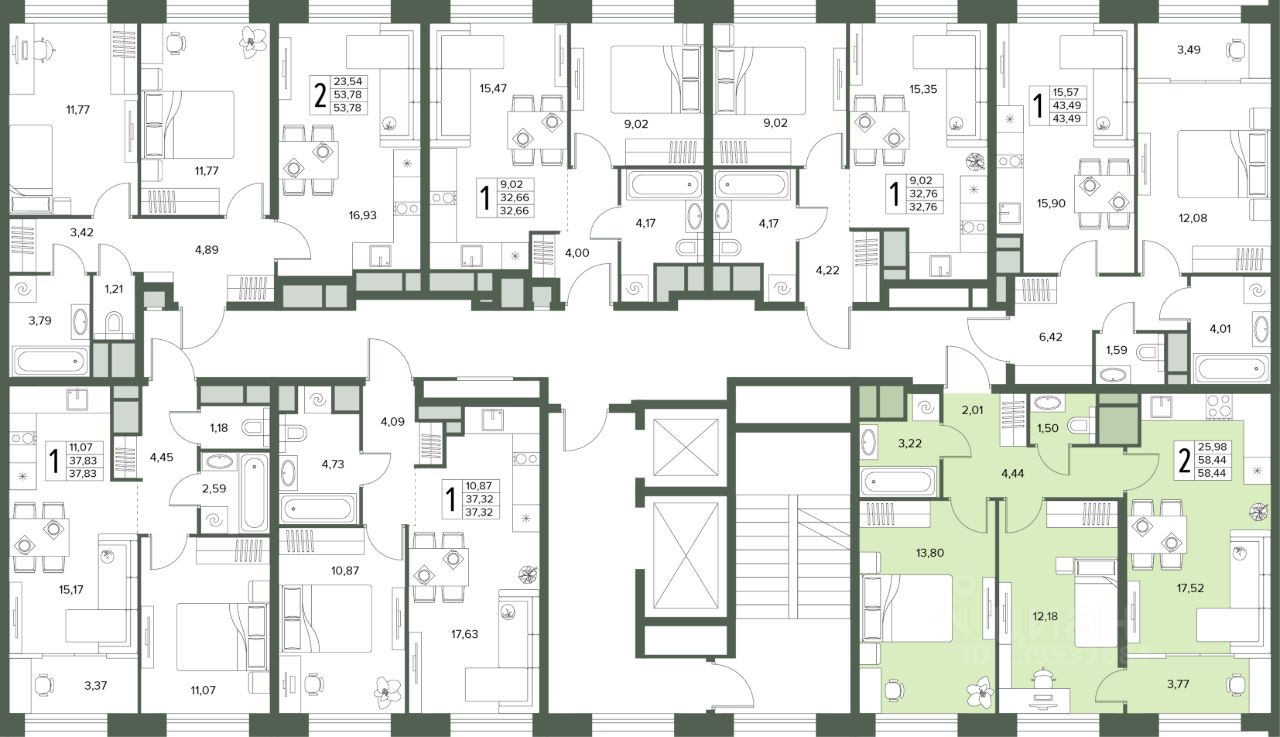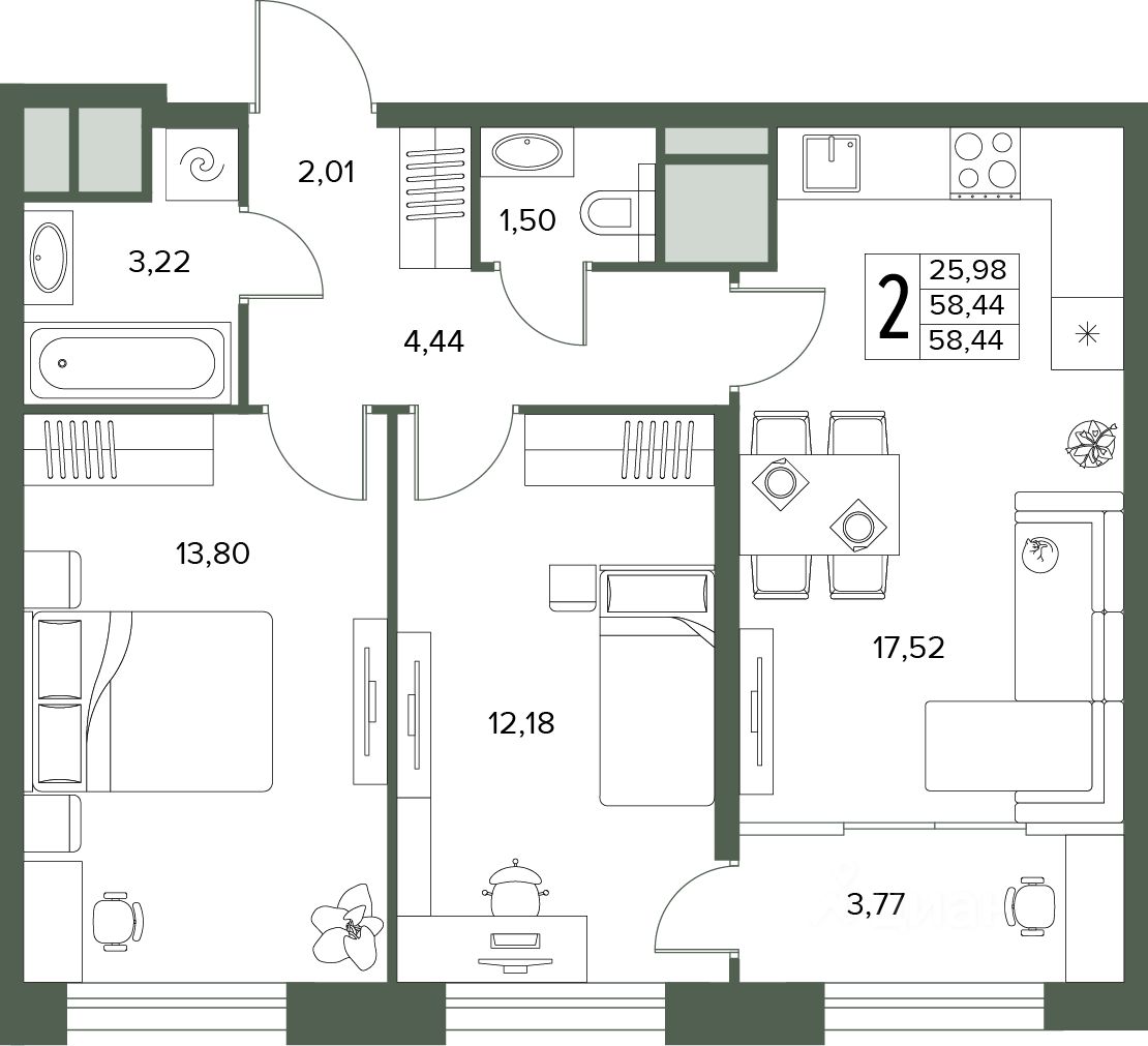 Общая площадь58,44 м2